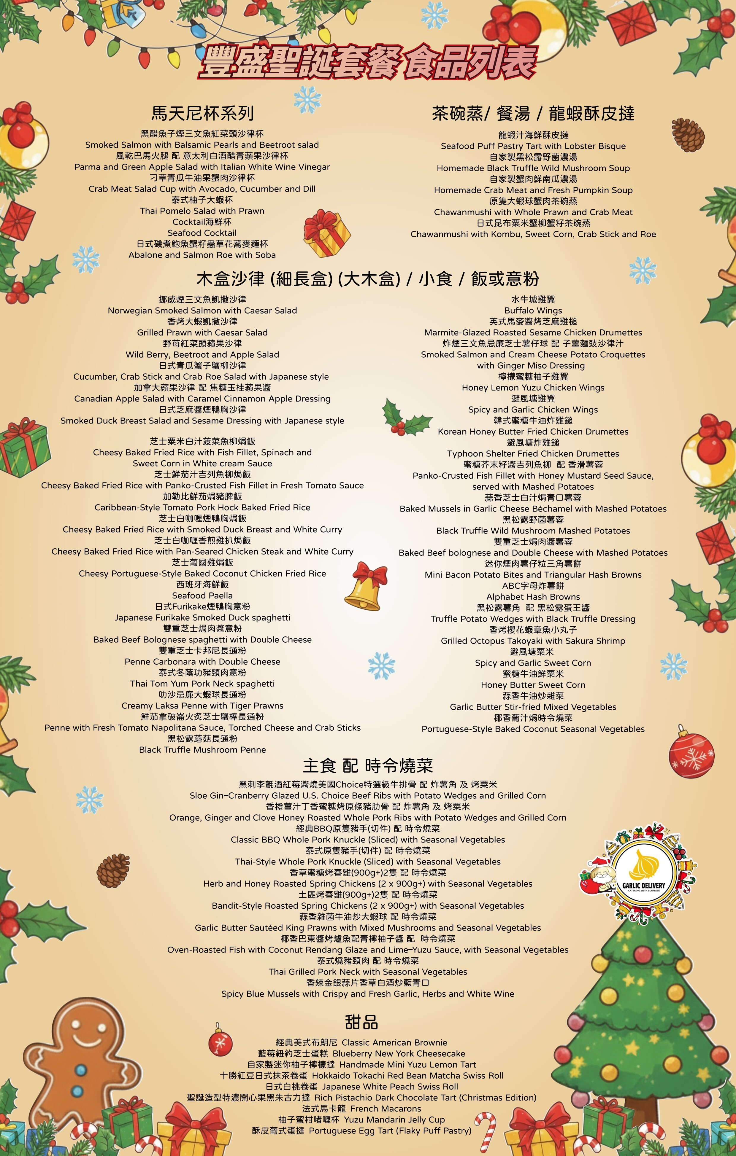 $1588 (6位) 豐盛聖誕套餐 包含以下食品: